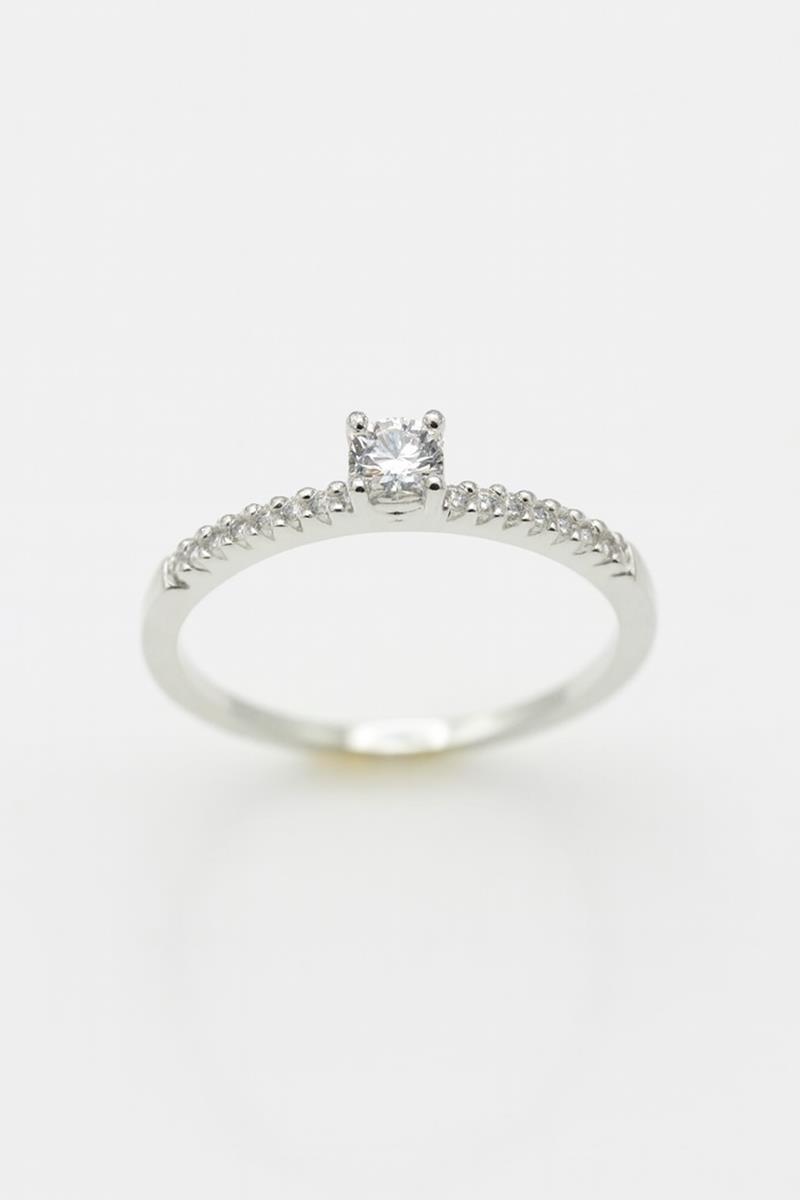 Anel Solitário em Prata 925 com Zircônia Branca