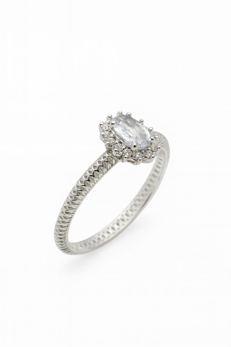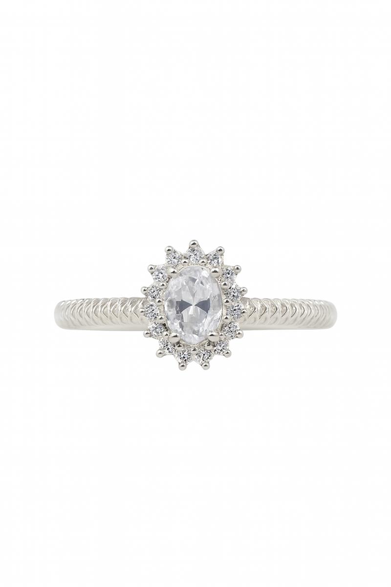 Anel em Prata 925 com Zircônia Oval e Cravação Halo