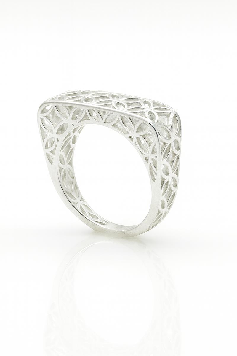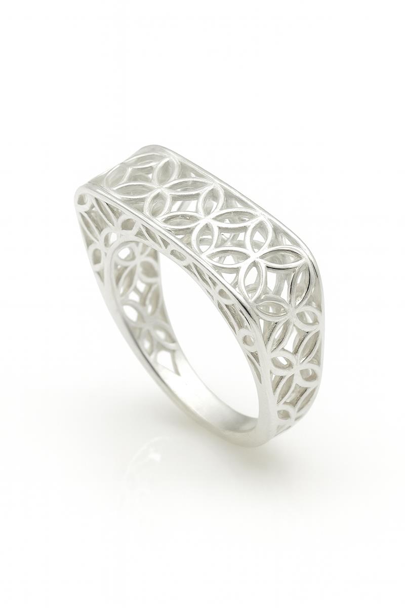 Um design moderno e sofisticado, este anel em Prata 925 possui acabamento vazado com delicados padrões geométricos que remetem à elegância e leveza. Seu formato diferenciado, com linhas retas e detalhes rendados, traz personalidade única à peça, tornando-a ideal para quem busca estilo e exclusividade.