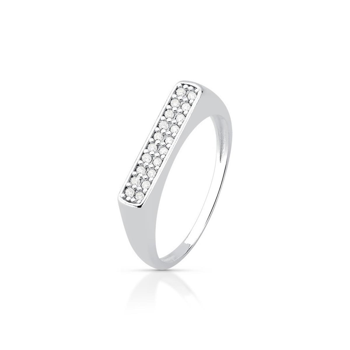 Anel Chapa Cravejado 2 Fileiras de Prata 925, composto de prata com cravação em forma de anel com um chapa no parte superior feito de prata cravejado com dois fileiras de cravação;