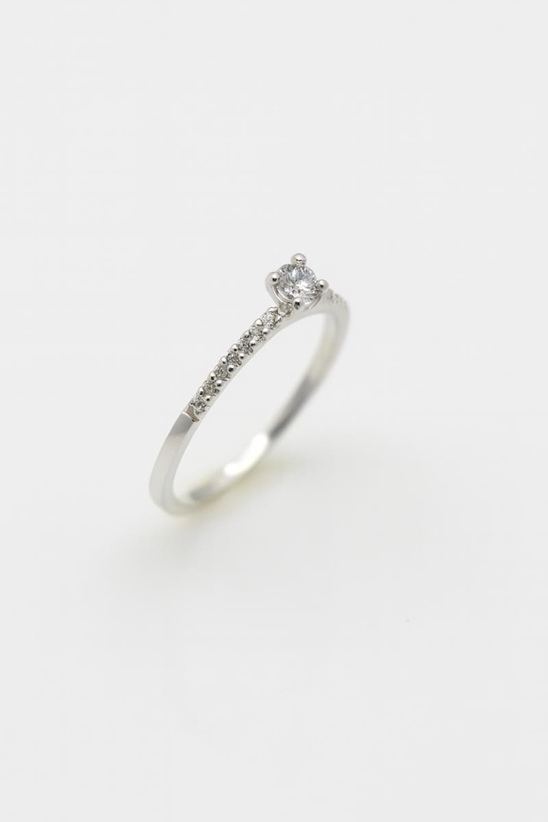 Minimalista e encantador, este anel solitário é confeccionado em prata 925 com acabamento polido de alto brilho. No centro da peça, uma delicada zircônia branca em cravação clássica destaca-se com elegância. A haste do anel é suavemente cravejada com pequenas zircônias que complementam o brilho da pedra central, criando uma joia atemporal e sofisticada.